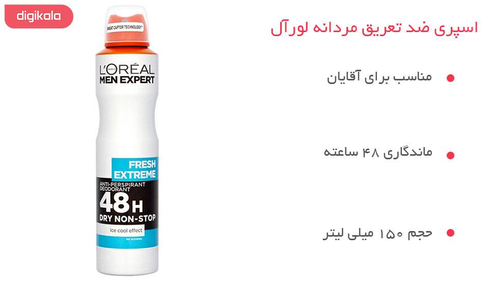 قیمت اسپری ضد تعریق مردانه لورآل سری Men Expert مدل Fresh Extereme 48H حجم 150 میلی لیتر